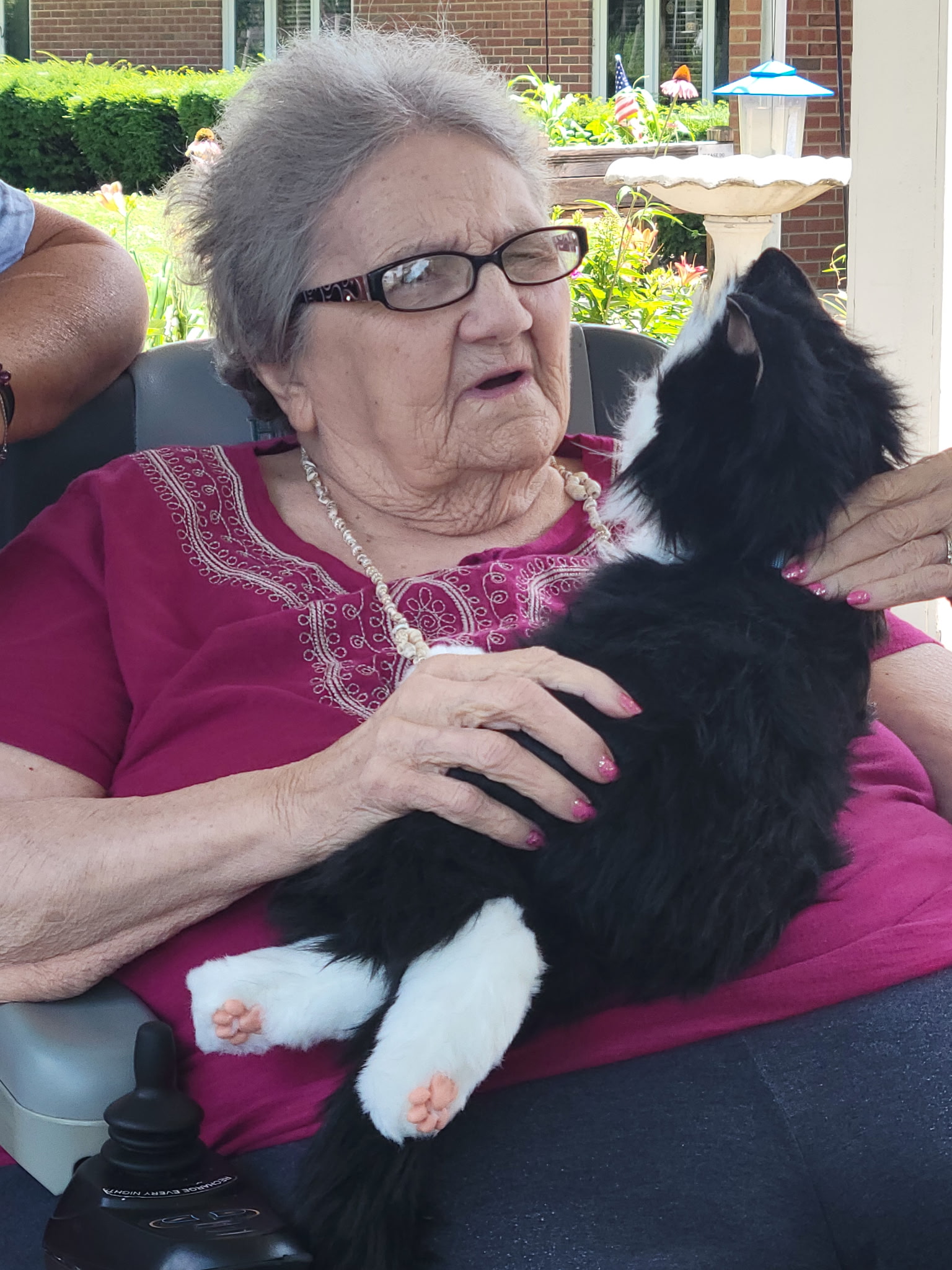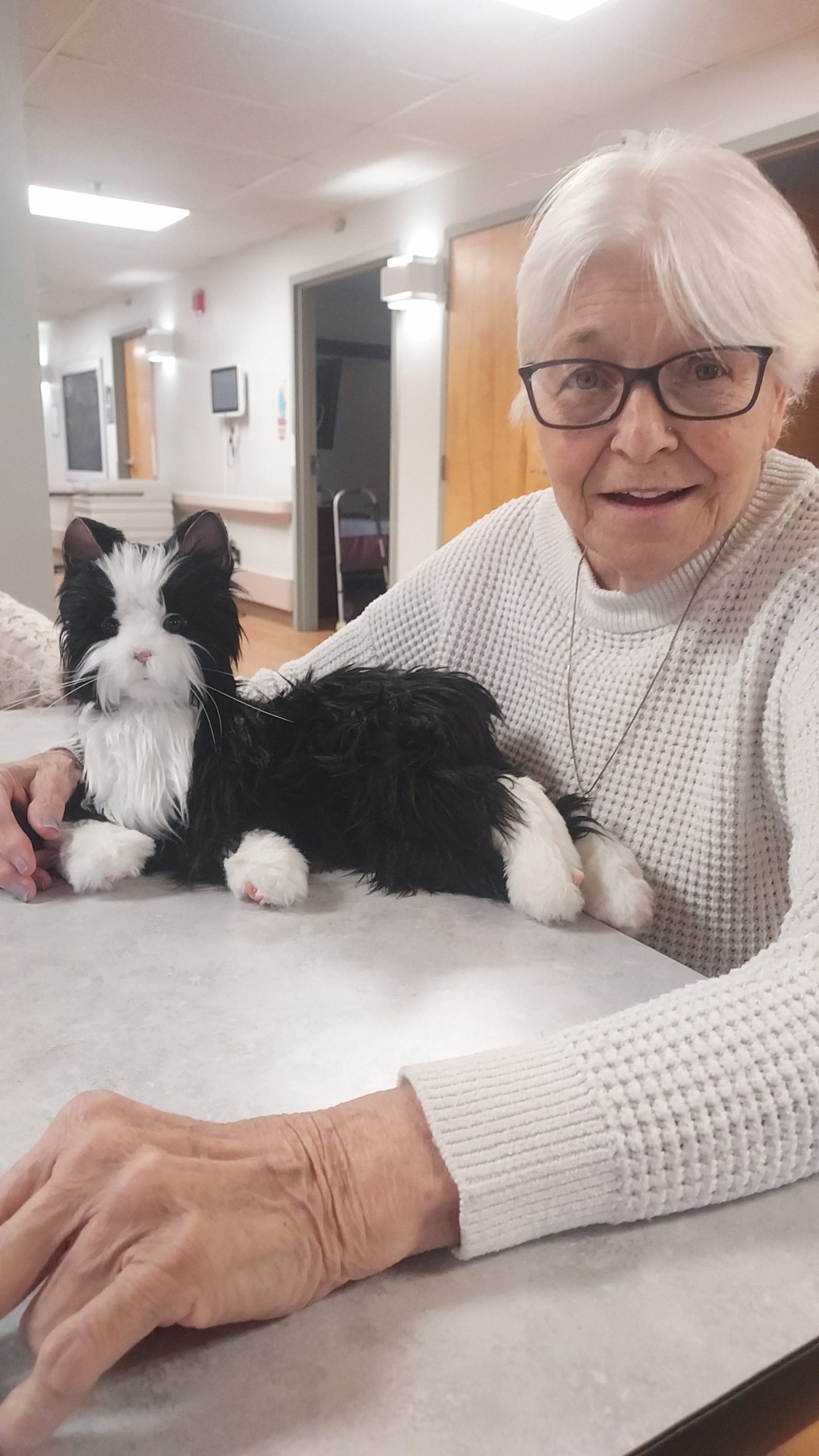 “I am a daughter who loves her mother very much. While we were growing up, we had a multitude of cats. When my mom entered the nursing home a few years ago, she became depressed because she couldn’t have a pet. This past summer I got her the black and white cat and things have been so much better for her. She carries that thing everywhere with her. Other residents stop her and ask to pet the cat. When she feels lonely now she talks to the cat. When she is sad, she talks to the cat. When nobody else is around, she talks to the cat. “Sweetie Joy” is always on her lap and her hands are always seen petting the cat. I am and will continue to be thankful for this invention. I have seen a light in her eyes that I haven’t seen in awhile, and I am so grateful!!!”